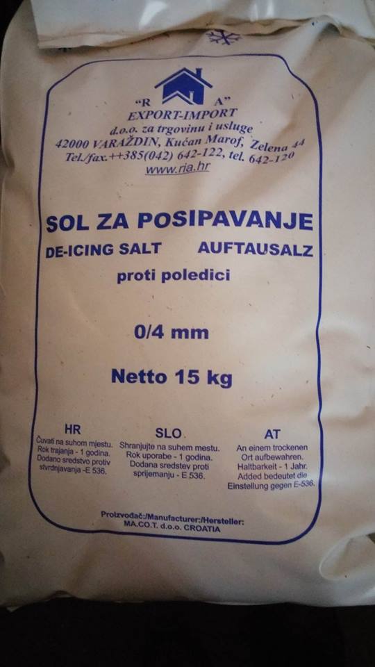 For institutions, businesses, households and individual users, we can offer road salt packed in small packs of 15 kg which are usually sold in the better-stocked stores and malls, and in our wholesale and retail. |